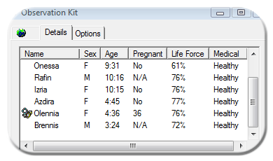 By the way, the number you see in the Observation Kit is actually a bug. Notice that Olennia is 4:36 hours old in that screenshot and the pregnancy counter is also 36? When a norn’s pregnancy counter is less than 1, it will show the norn’s minute counter number instead of 0. You’ll normally only see this if you’re watching the Observation Kit the second a norn becomes pregnant.