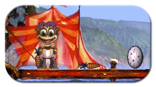 My more frequent visits didn’t seem to make much of a difference to my Norns: Bolga promptly fell asleep after I gave her a few tickles on the nose! I never would have picked the gloomy jungle as a nice place to rest, but she found it to make a wonderful sleeping area. Perhaps the bamboo post made her feel a little more secure. Bolga was actually one of the lucky few who was alone for the time being: Nine out of the eleven Norns were on the desert island and crowded together! Even Halvor, the Grendel, was mixed in, although he had enough sense to hang out with the unhatched eggs. They made nice, quiet companions.