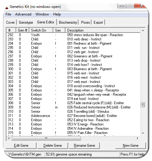 Note that the gene numbers will probably not correspond with the standard Norn genome, since Dee has a lot of additional genes. She actually has a total of 413 genes, whereas the standard Norn usually has about 320 genes. For this reason, this case study has been split into multiple parts to make it more manageable for everyone!