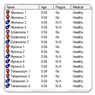 So I was left with sixteen young Norns, all ready to live their lives. By the way, the COB I used to unpause all eggs that had been touched worked immensely well… They all hatched at once, as indicated by their ages! I expect that the updates about this world will be more objective and documentary in nature. Hopefully it’s a bit of a different pace that ties in with the real life study of different species. Sometimes entire generations might be skipped over in the interest of making sure that this colony thrives. Otherwise, I would likely need to post updates after every few minutes of in-game time! That works for some of my other worlds, yet I wanted to do something different with Creatures 2. It’s been wonderful to watch these Norns so far. With four separate groups, there was rarely a dull moment! Remember that breeding extends the lifespan of females, but decreases the lifespan of males. I expect each group to have a different dynamic when it comes to their queen or queens. The Albian Ant Norn is quite an interesting breed!