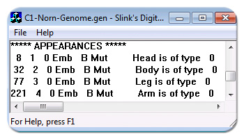 Creatures 1 Genetics Kit Screenshot: Gene #000 (Compulsory Header Gene)