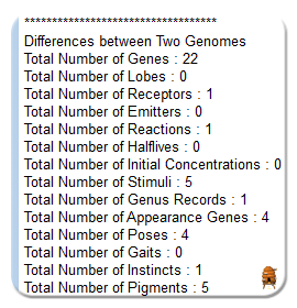 All of these changes are designed to be fairly minor, mostly geared towards normalizing some genes to make genetic comparisons much easier. At this point, I often have to sift through simple differences to locate the real mutations. Rest assured that not all of the Norns will be identical, though! I used the Forest Norn genome as a base, since it includes a number of improvements. I also added in a few extremely minor updates of my own. So far, this upcoming generation looks quite promising! Had I started over, my Norns would have included identical updates. Time and time again, there is always something to learn about Creatures! This Norn line is far from a failure, though there have been instances of the floating glycogen receptor and floating hunger emitter not being inherited properly. A Norn without the ability to feel hunger merely from an issue with his or her genes is a far cry from the interesting mutations that often turn up.